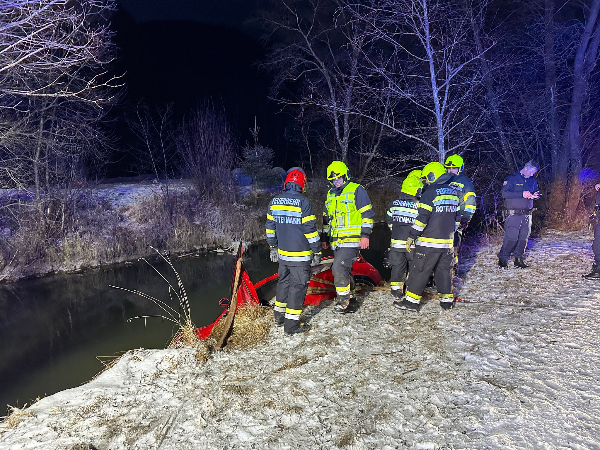 Am 8. Jänner 2026, um 16:49 Uhr, wurde die FF Rottenmann zu einem technischen Einsatz alarmiert. Alarmtext: „PKW im Bach, Person im Fahrzeug“