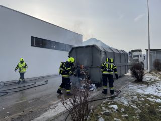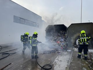 Im Bereich der Kartonpresse ist es zu einem Brand gekommen, wodurch der Brand auf den Müllcontainer übergegangen und es zu einer starken Rauchentwicklung gekommen ist.