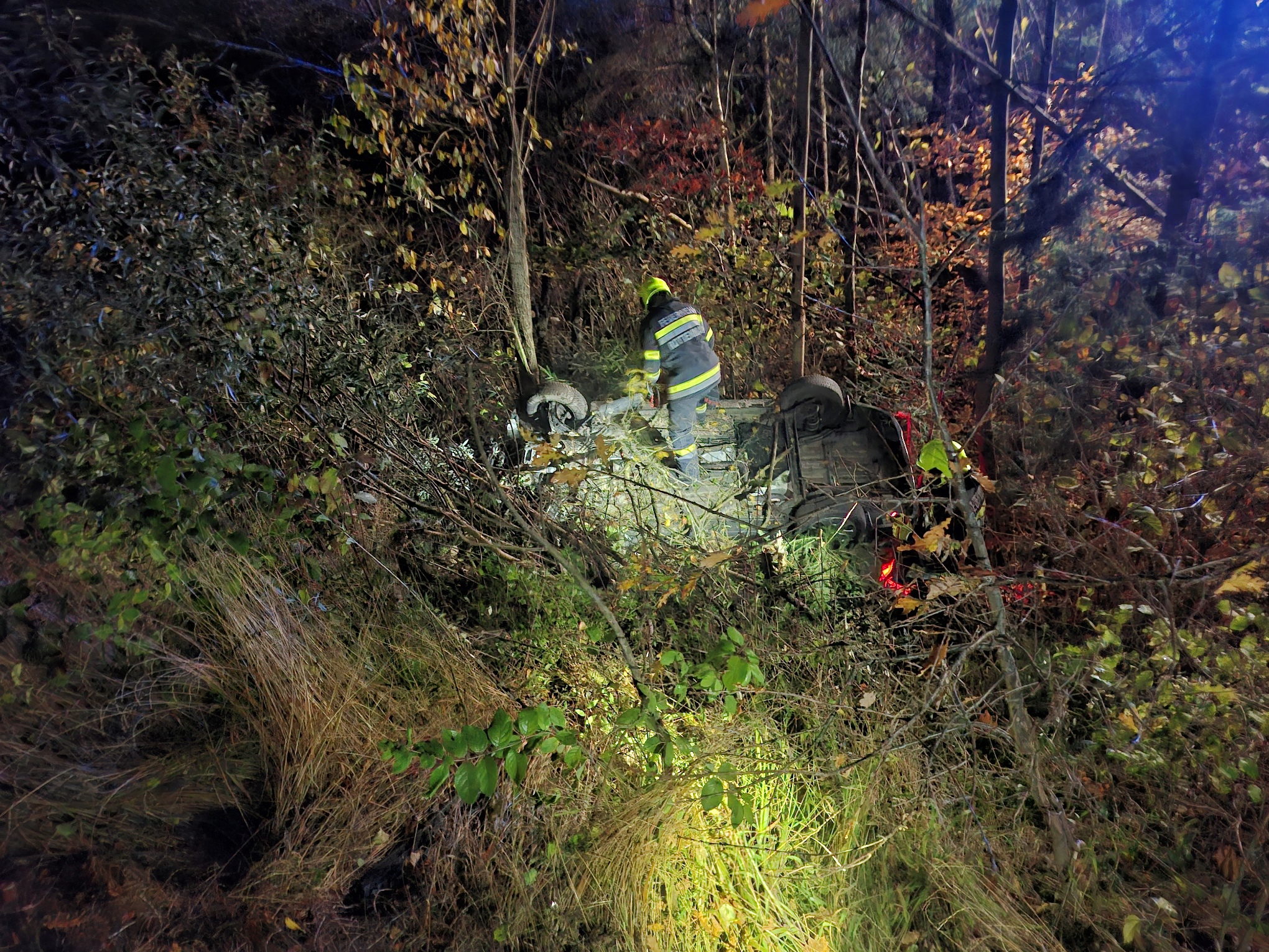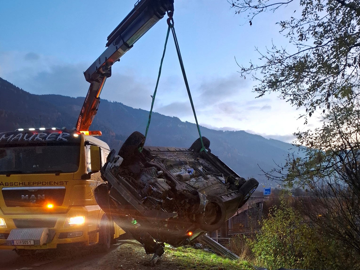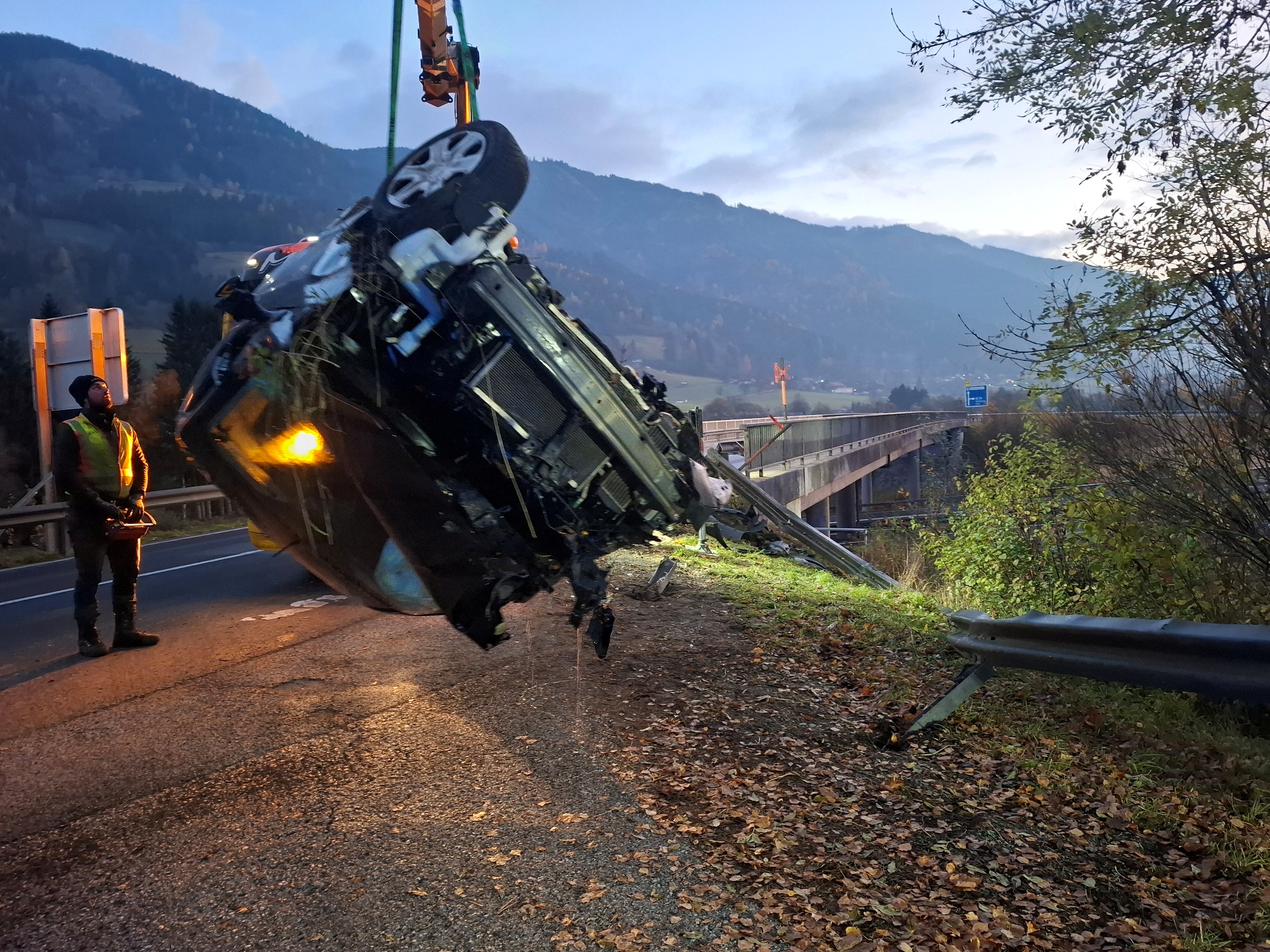Am Sonntag, um 5:39 Uhr, wurde die Feuerwehr Rottenmann zu einem Verkehrsunfall auf der B113, Kreuzung Strechau/Mitterhof gerufen. Ein PKW durchbrach aus ungeklärter Ursache die Leitschiene, stürzte nach unten in Richtung A9 und kam auf dem Dach zwischen ein paar Bäumen zu liegen.
