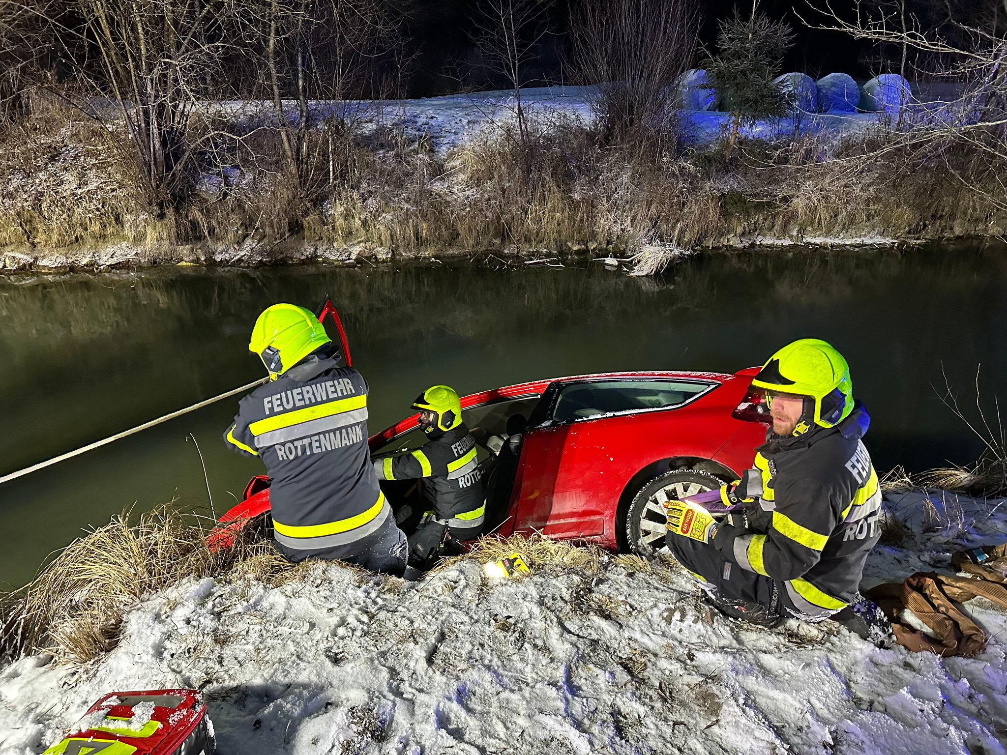 Am 8. Jänner 2026, um 16:49 Uhr, wurde die FF Rottenmann zu einem technischen Einsatz alarmiert. Alarmtext: „PKW im Bach, Person im Fahrzeug“