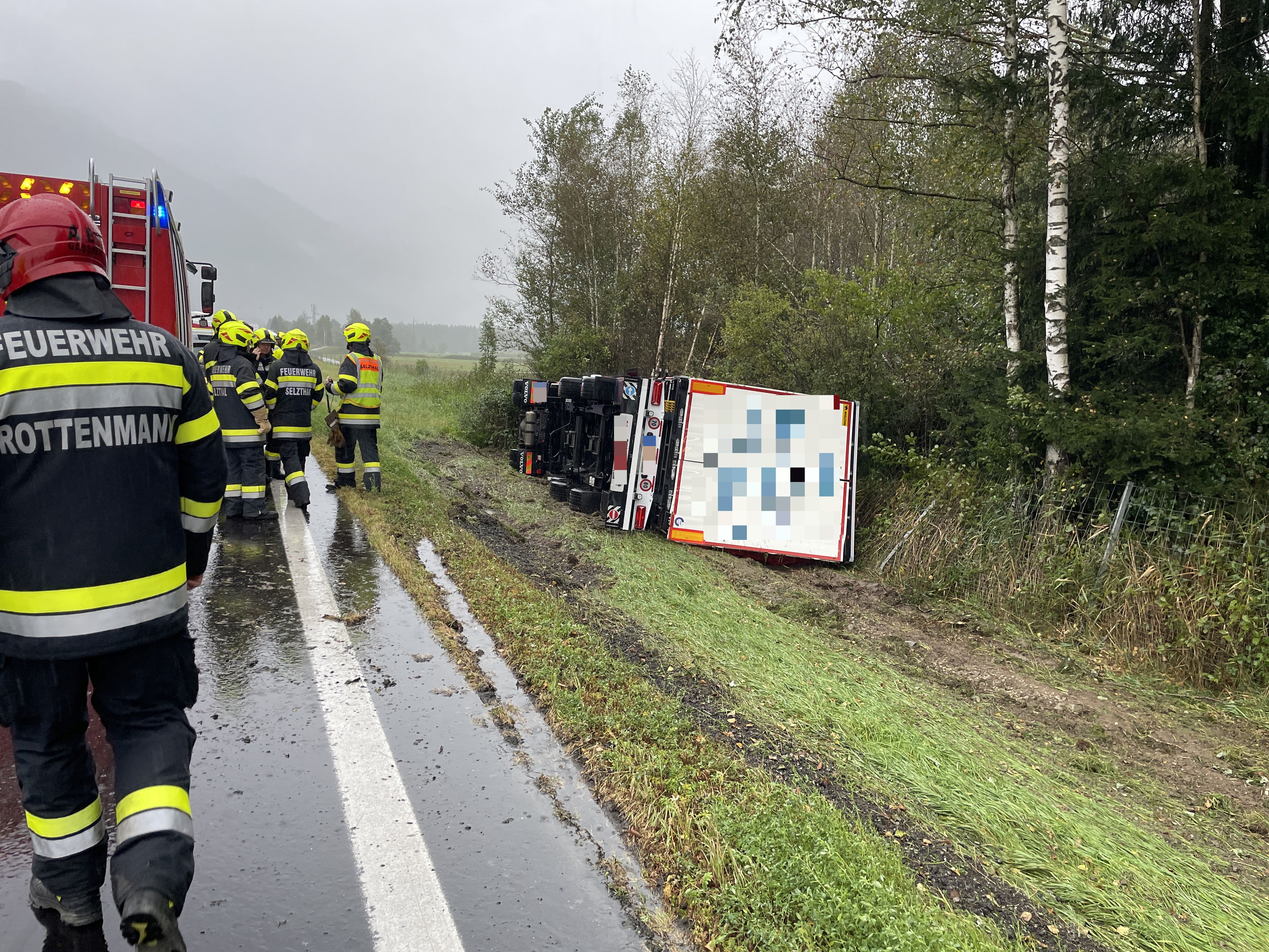 Zwischen dem Knoten Selzthal und der Autobahnfahrt Ardning/Admont kam aus bisher unbekannter Ursache ein LKW von der Fahrbahn ab und kam im Straßengraben auf der Seite liegend zum Stillstand.