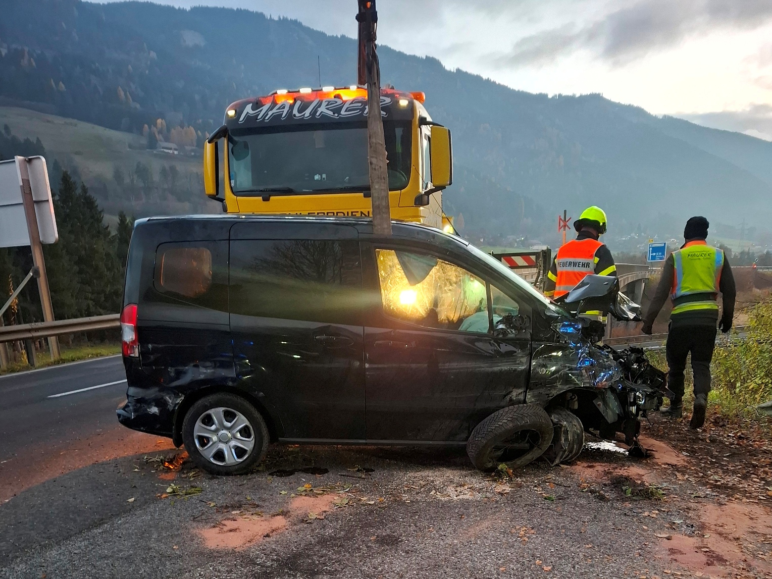 Am Sonntag, um 5:39 Uhr, wurde die Feuerwehr Rottenmann zu einem Verkehrsunfall auf der B113, Kreuzung Strechau/Mitterhof gerufen. Ein PKW durchbrach aus ungeklärter Ursache die Leitschiene, stürzte nach unten in Richtung A9 und kam auf dem Dach zwischen ein paar Bäumen zu liegen.