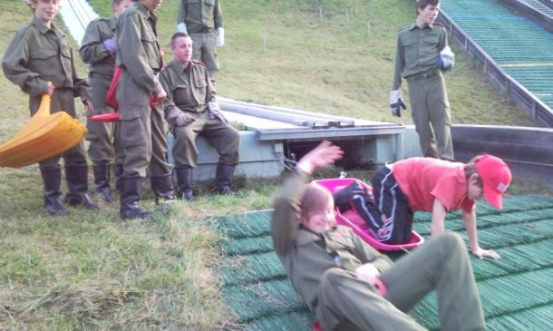 Rodelpartie auf der Karl-Horn-Sprungschanze